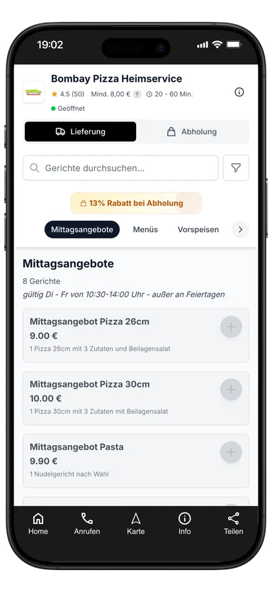 gültig Di - Fr von 10:30-14:00 Uhr - außer an Feiertagen